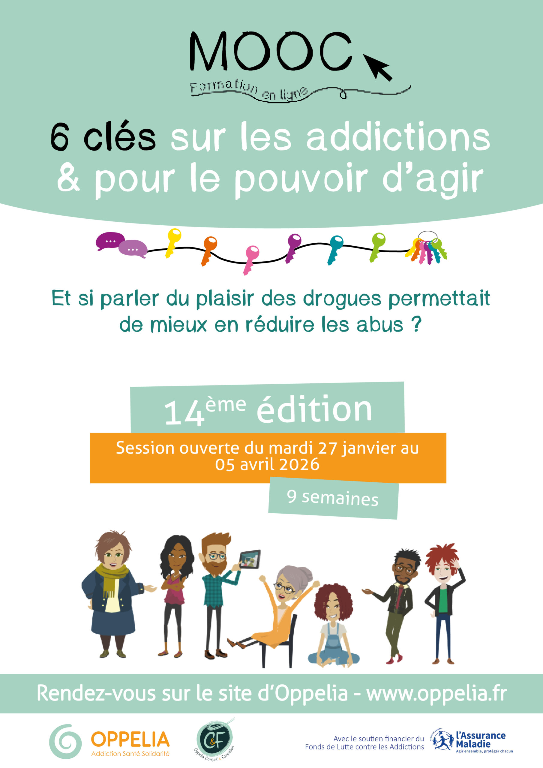 Les associations Oppelia, ARPAE et OCF (organisme de formation d’Oppelia) à l’origine du MOOC « 6 clés sur les addictions et pour le pouvoir d’agir » ont l’habitude de faire des formations. Celle dite des « 6 clés », conçue par l’ARPAE, est dans leur catalogue depuis des années et des milliers de personnes y ont participé, voire contribué, dans toute la France métropolitaine et d’Outre-mer, mais aussi dans d’autres pays (Québec, Maroc, Colombie, Vietnam, Côte d’Ivoire…).